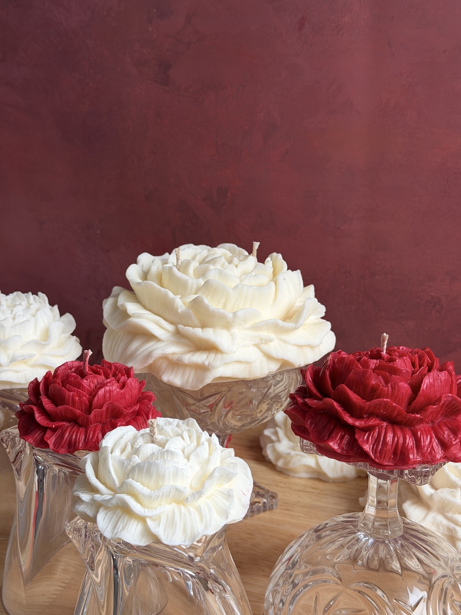 Un bujor reinterpretat într-o formă sculpturală, cu petale atent definite și o deschidere subtilă ce păstrează farmecul unei flori în devenire. Liniile ușor ascuțite adaugă caracter și eleganță, transformând fiecare lumânare într-un obiect decorativ rafinat.